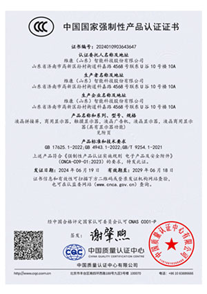 公司通過(guò)了CCC認(rèn)證、節(jié)能認(rèn)證、環(huán)境標(biāo)志產(chǎn)品認(rèn)證、公安部安全與警用電子產(chǎn)品質(zhì)量檢測(cè)中心檢測(cè)報(bào)告(CNAS認(rèn)證) 、ISO9001、14001、18001、CE、CB、FCC、ROHS、抗震防塵等多項(xiàng)資質(zhì)認(rèn)證,并入選《政采節(jié)能產(chǎn)品清單》。